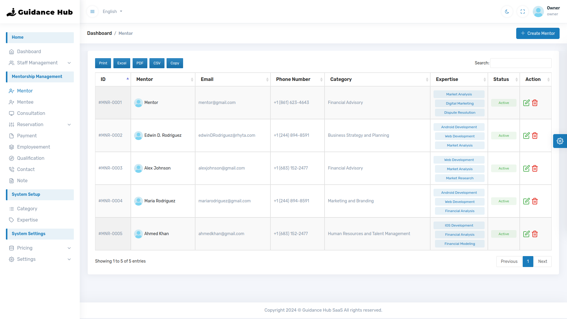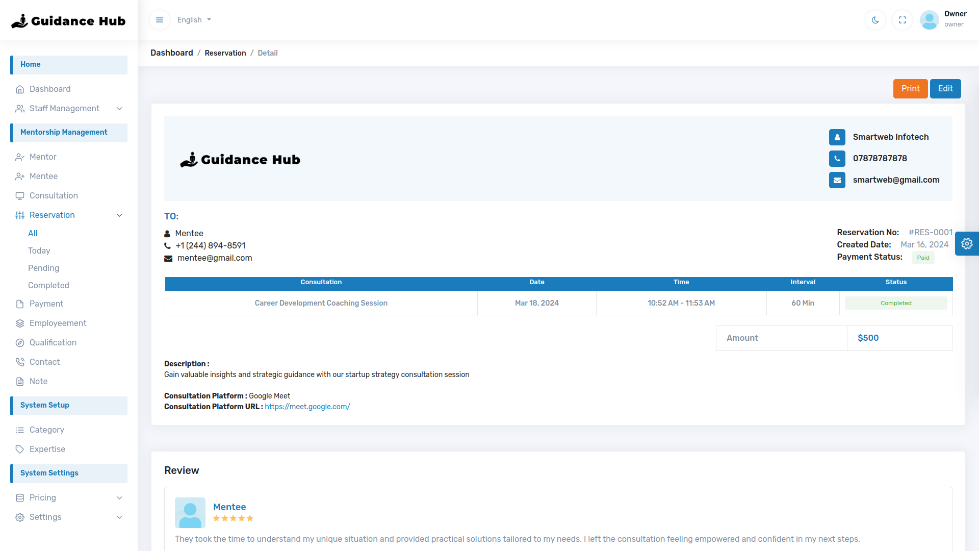 Live DemoThe Guidance Hub - Mentorship Management System is a comprehensive platform designed to facilitate and streamline mentorship programs within organizations. It provides a centralized hub where mentors and mentees can connect, communicate, and collaborate effectively.